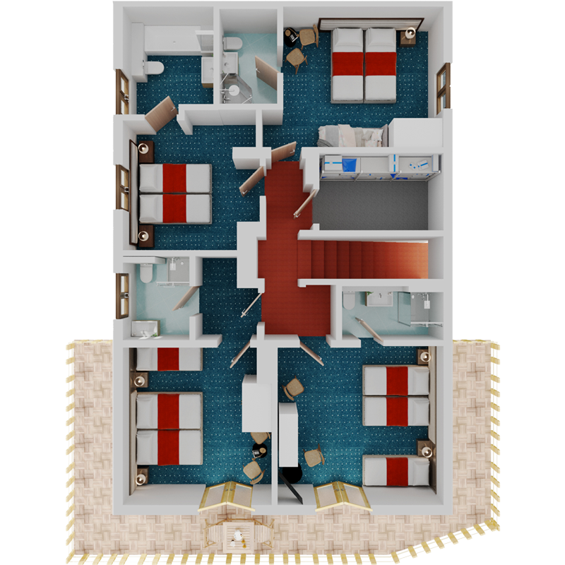 Guests can relax in the private indoor sauna and unwind in the adjoining relaxation room. For social or evening indulgence, Wirts Private Bar on the ground floor—with under‑counter refrigeration—makes a perfect gathering place to enjoy your own chosen wines or champagnes. A corner TV/DVD setup is also available for younger guests or movie nights.